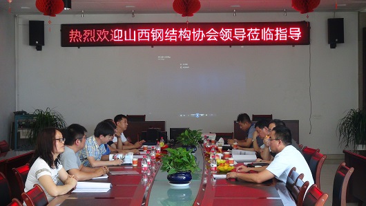 在此次山西鋼結構協會的現場調研中,協會向盛大鋼構總結了協會至成立以來開展的一些工作和取得的成果,協會副會長張波詳細講解了已經改組成立的材料與產品商貿平臺,并對憑條未來的發展進行了深入的研究和討論。同時希望企業在協會正在開展的深化設計技術服務中心的組建工作和《裝配式鋼結構建筑技術規程》以及協會網站建設等幾項重要的工作中多提寶貴意見,希望企業多多的參與好支持協會的工作。