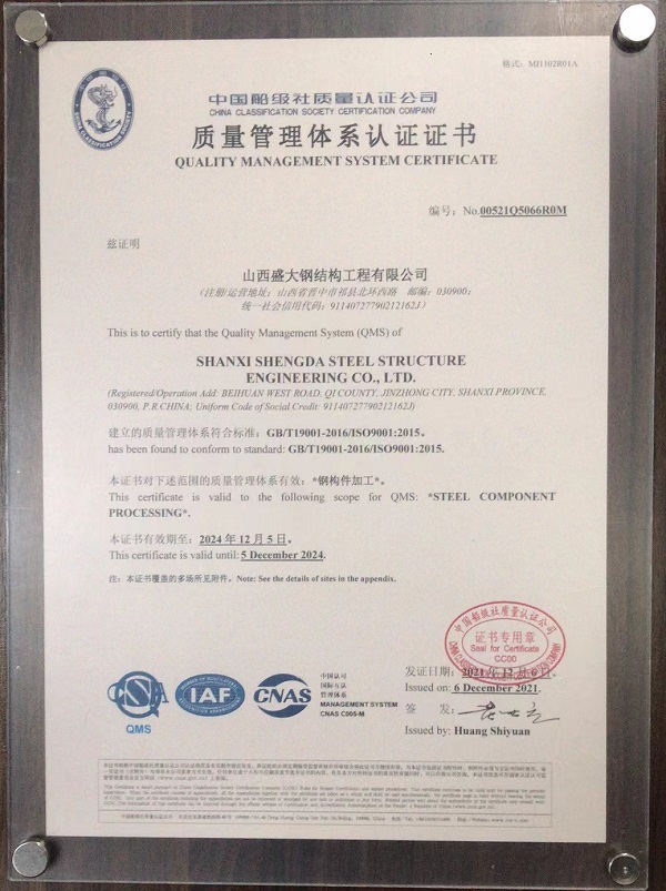 山西盛大鋼結(jié)構(gòu)工程有限公司,成立于1996年5月,是中國(guó)鋼結(jié)構(gòu)協(xié)會(huì)會(huì)員單位,山西鋼結(jié)構(gòu)協(xié)會(huì)副會(huì)長(zhǎng)單位。成立二十多年來(lái),公司始終秉持“質(zhì)量為本,科技創(chuàng)新,誠(chéng)信創(chuàng)業(yè),共謀雙贏”的經(jīng)營(yíng)理念,堅(jiān)持走“創(chuàng)新、協(xié)調(diào)、綠色、發(fā)展、共享”的發(fā)展之路。未來(lái),山西盛大鋼結(jié)構(gòu)公司將繼續(xù)在董事長(zhǎng)賈怡明的帶領(lǐng)下,嚴(yán)把生產(chǎn)質(zhì)量和鋼結(jié)構(gòu)工程質(zhì)量關(guān),不斷向致力于打造“年產(chǎn)十萬(wàn)噸山西鋼結(jié)構(gòu)加工基地”的目標(biāo)邁進(jìn)。